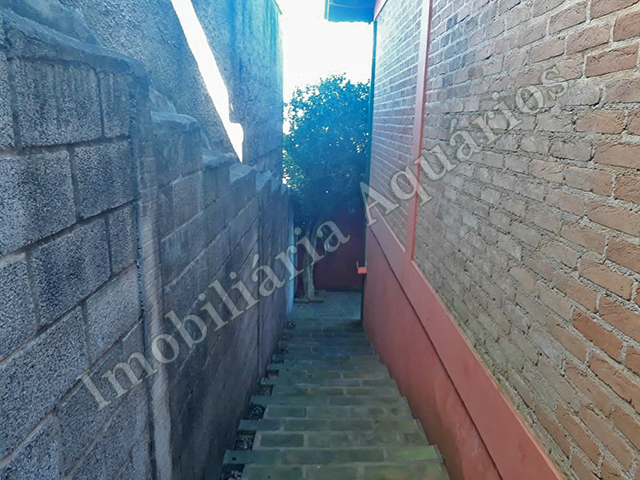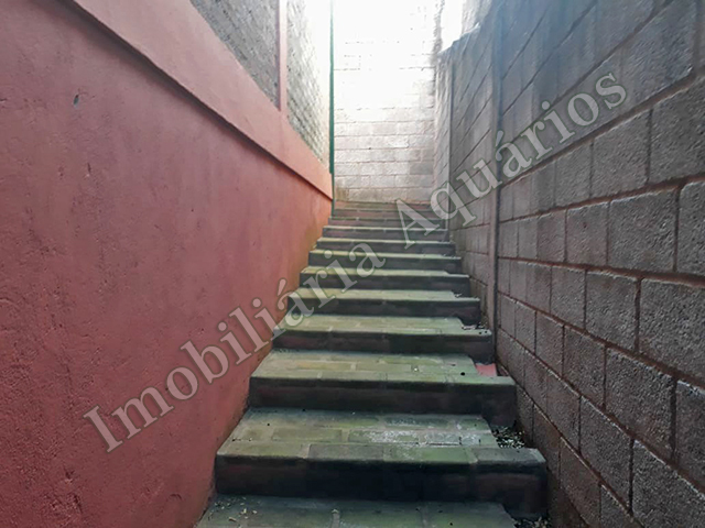 Pavimento inferior: garagem coberta, 3 cômodos, lavanderia e quintal.