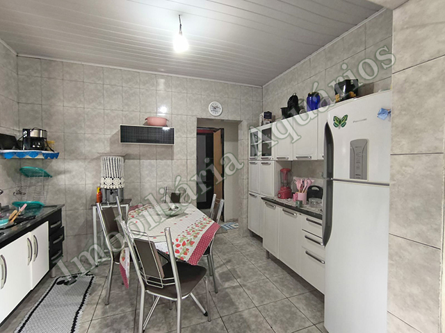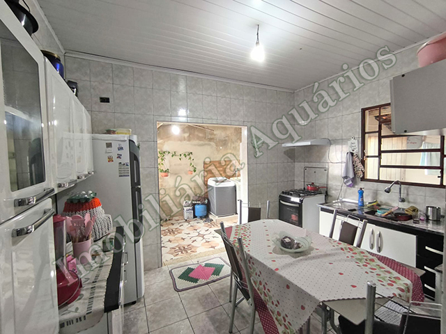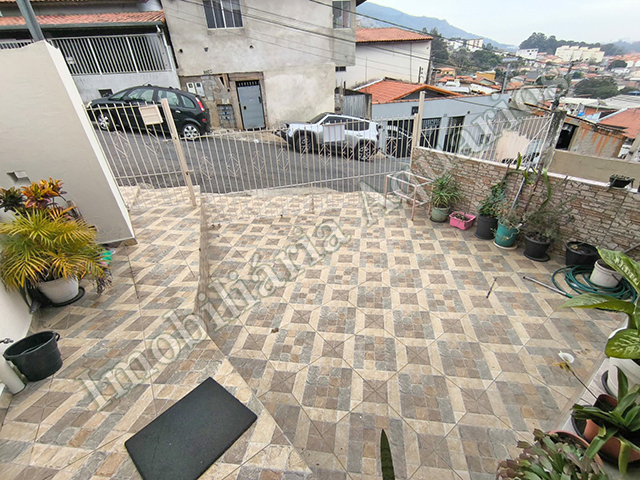 Parte superior: 3 dormitórios, sala, cozinha, banheiro social, lavanderia coberta, mais um cômodo e pequena área nos fundos, garagem descoberta.