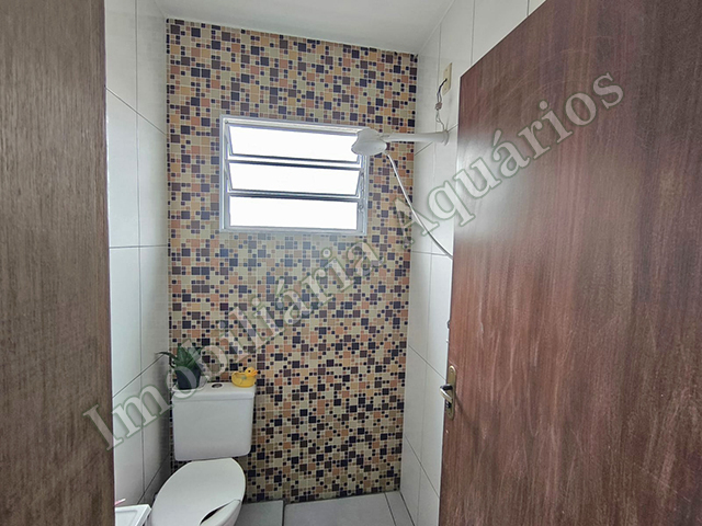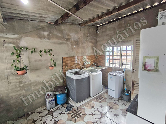 Embaixo: 2 casas com 2 cômodos e banheiro, cada uma, lavanderia coberta e vaga de garagem. |