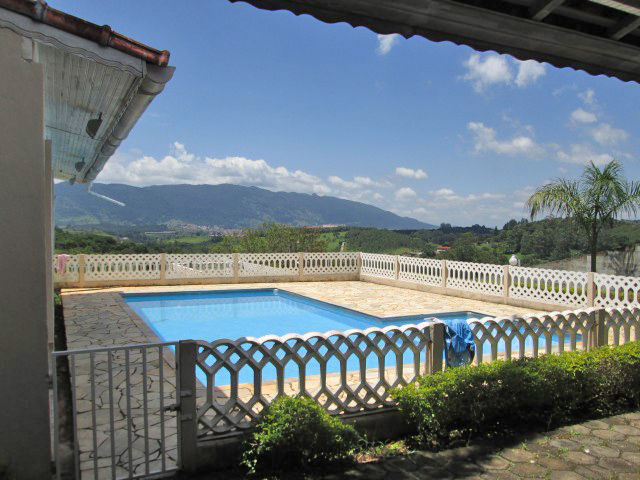Detalhamento: Linda chácara com casa de 3 quartos, sendo 1 suíte, sala, copa, cozinha, área de churrasqueira, piscina, linda vista, a 100 metros do asfalto.