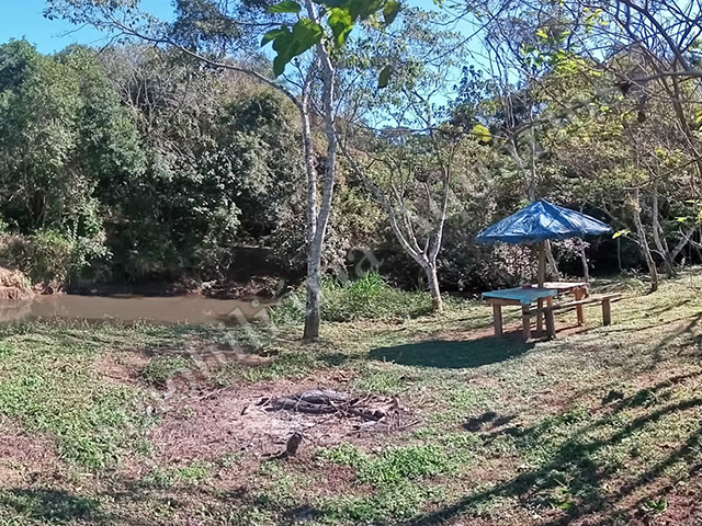 Detalhamento: Chácara localizada no bairro do Rodeio, com pomar, rio nos fundos, água de poço caipira e da Copasa na rua, só pedir ligação, contendo 2 casas:
