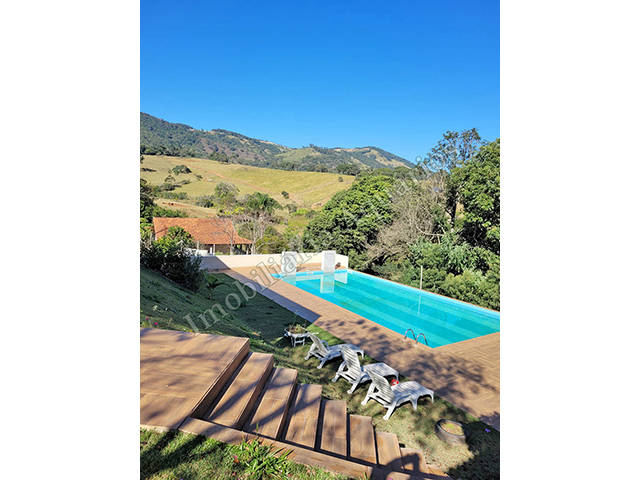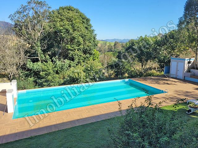 | Detalhamento: Linda chácara localizada próximo à Cachoeira do Salto, com casa alto padrão, 2 suítes, 2 dormitórios, banheiro, lavabo, sala visita, sala jantar, cozinha, varanda com área gourmet e fechada em vidros, ampla piscina, pomar, água de poço semi-artesiano, ótimo acesso por estrada pavimentada, internet via cabo. |