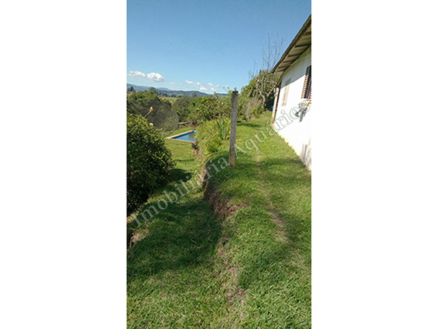 | Detalhamento: Lindo sítio, escriturado, com casa de 3 quartos de 4x4 metros, cozinha com fogão a lenha e serpentina, 2 WCs, interno e externo, mais de 50 moitas de bananeiras, mais de 30 pés de manga, 15 pés de jaca, jabuticaba, figo, etc., galinheiros, picina de água corrente 12x4 metros. Aceita carro como parte de pagamento ou permuta por casa no Litoral. |